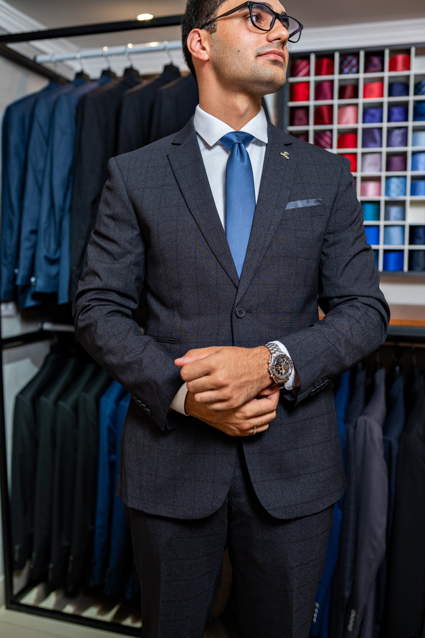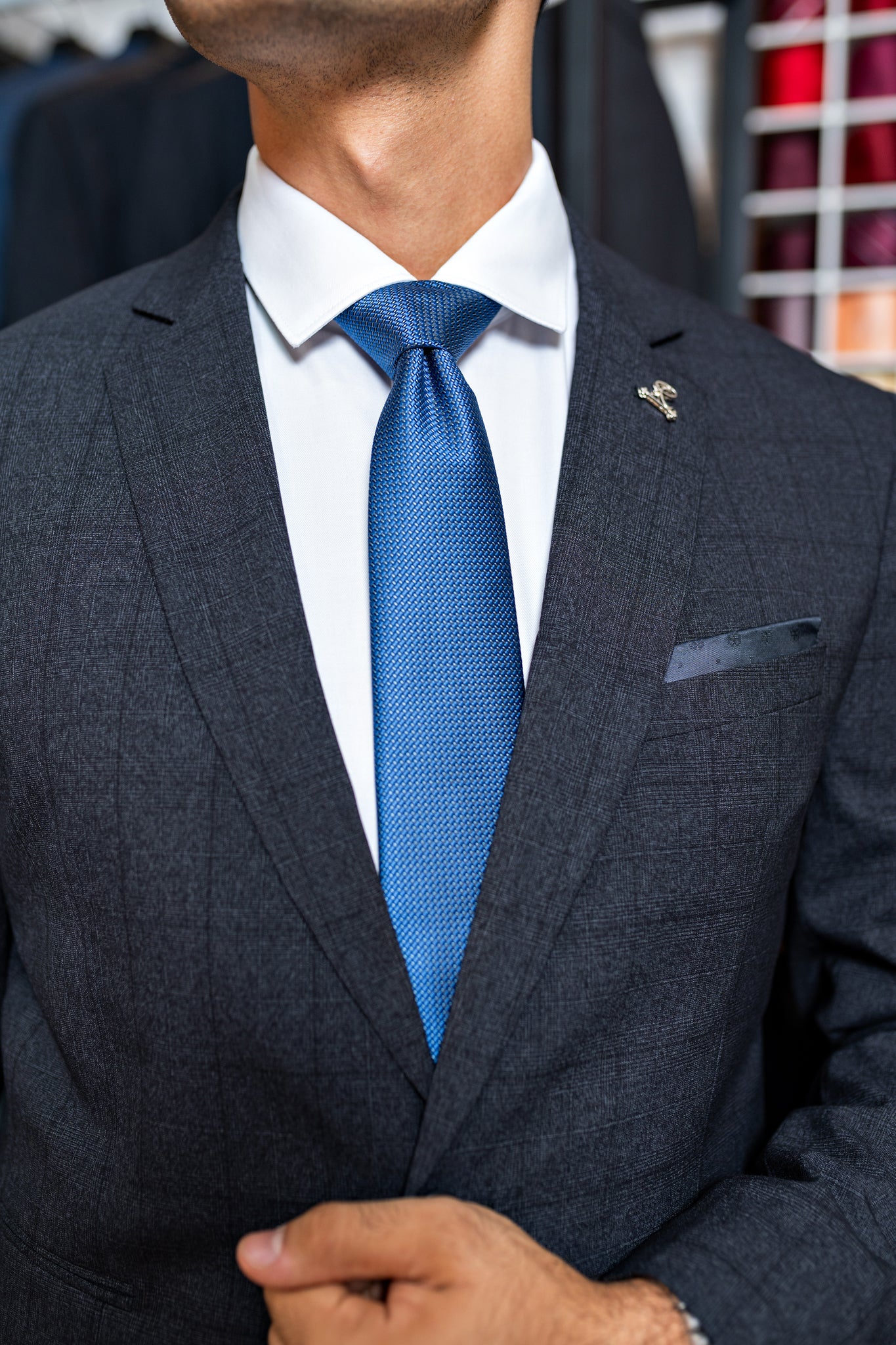 • Botões na cor do terno.