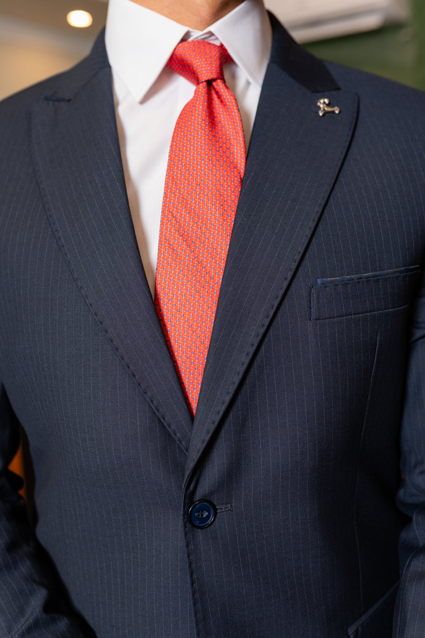 • Lapela peak de 8 cm com pesponto.