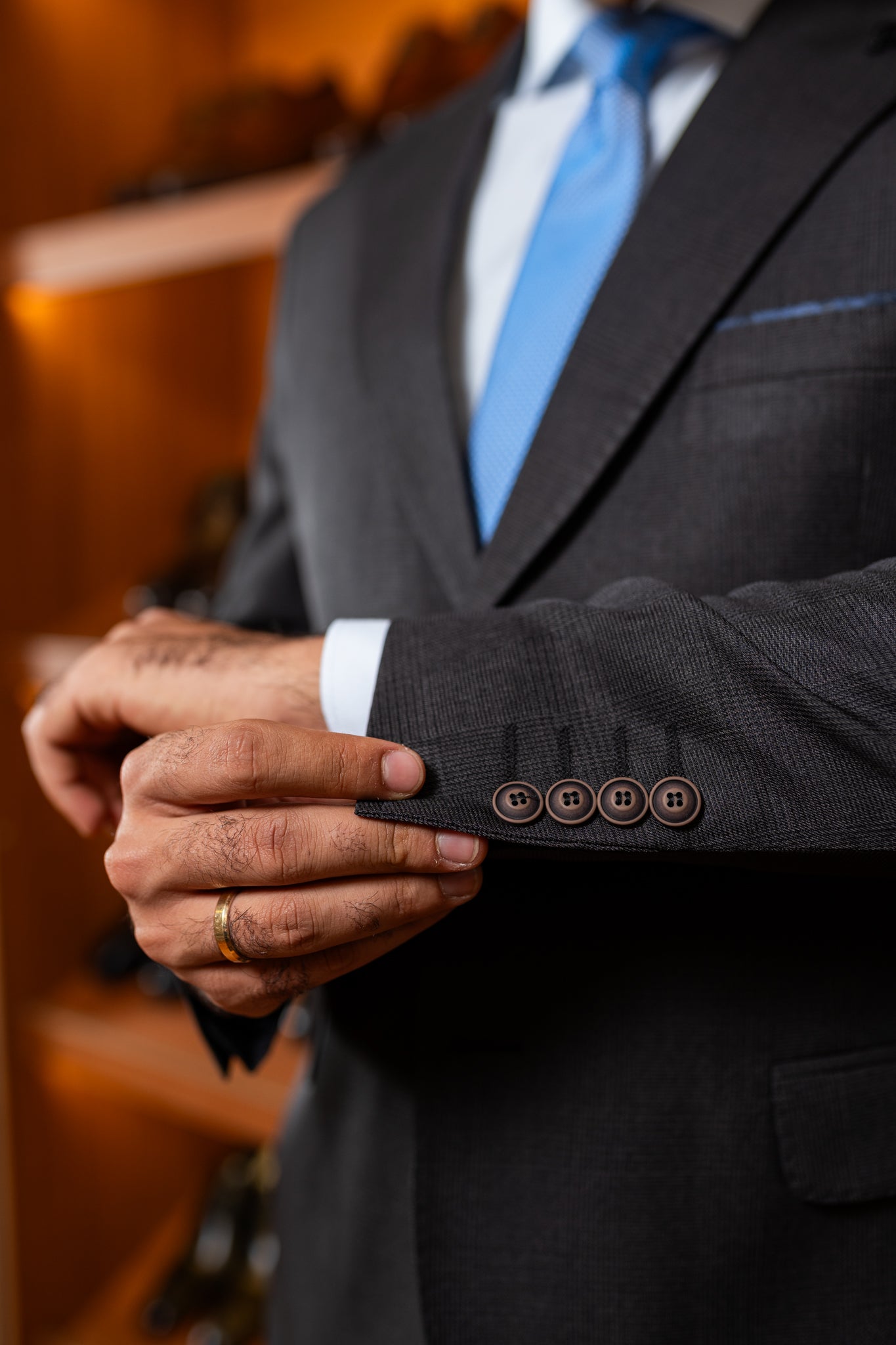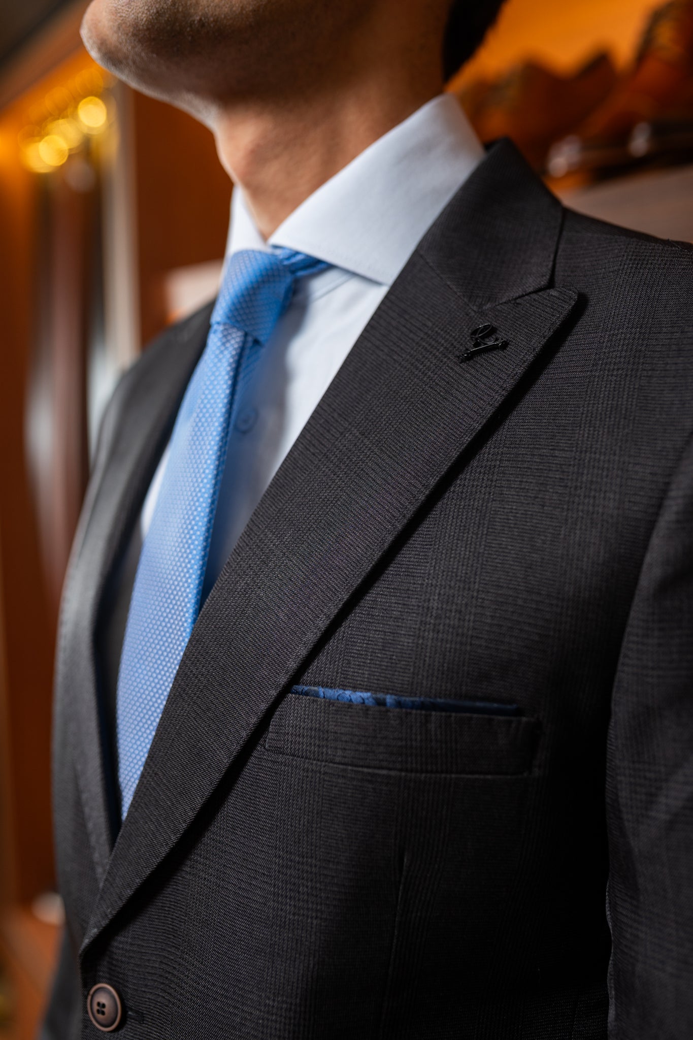 Lapela: Peak (bico) de 7 cm, com presponto