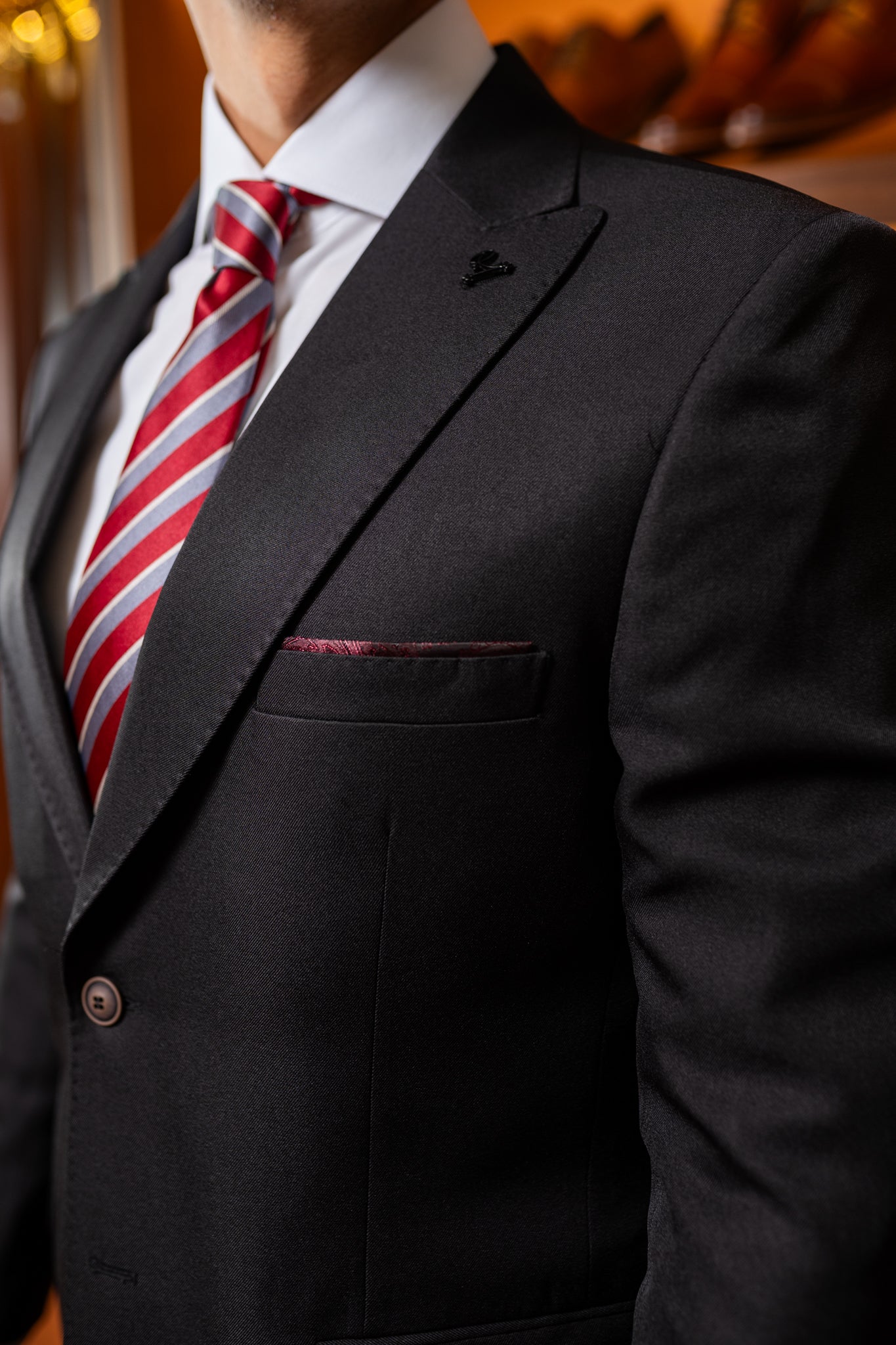Lapela peak de 8 cm, prespontada.