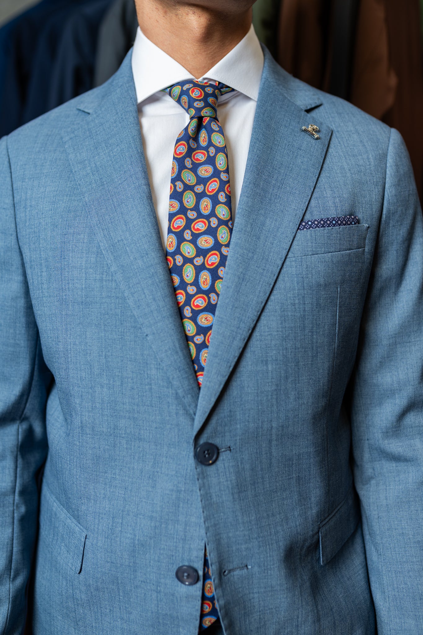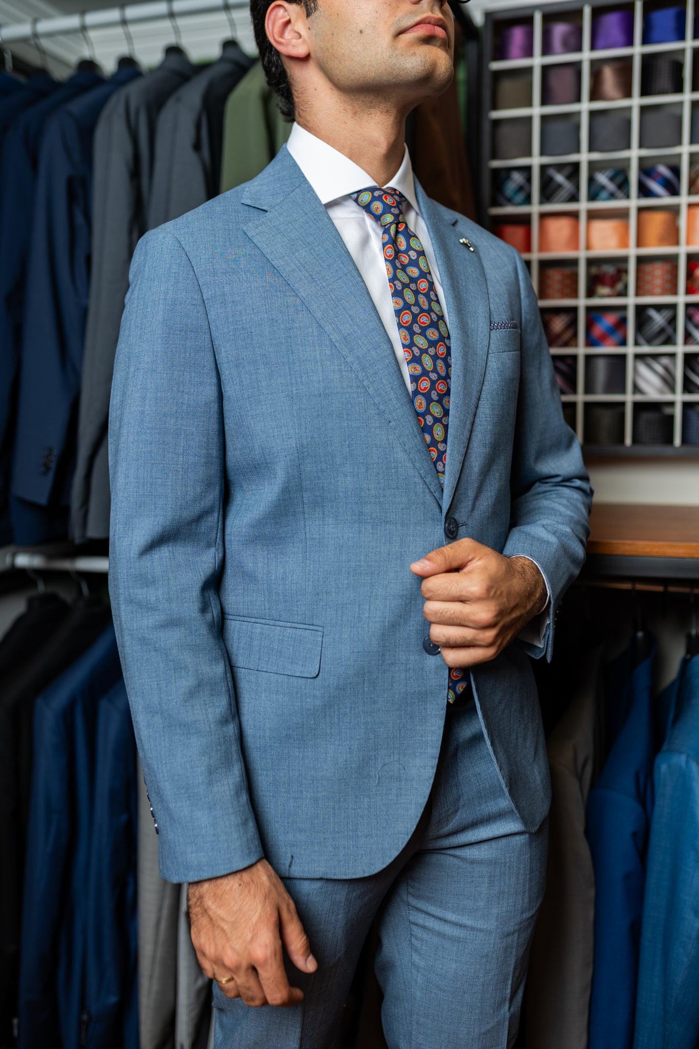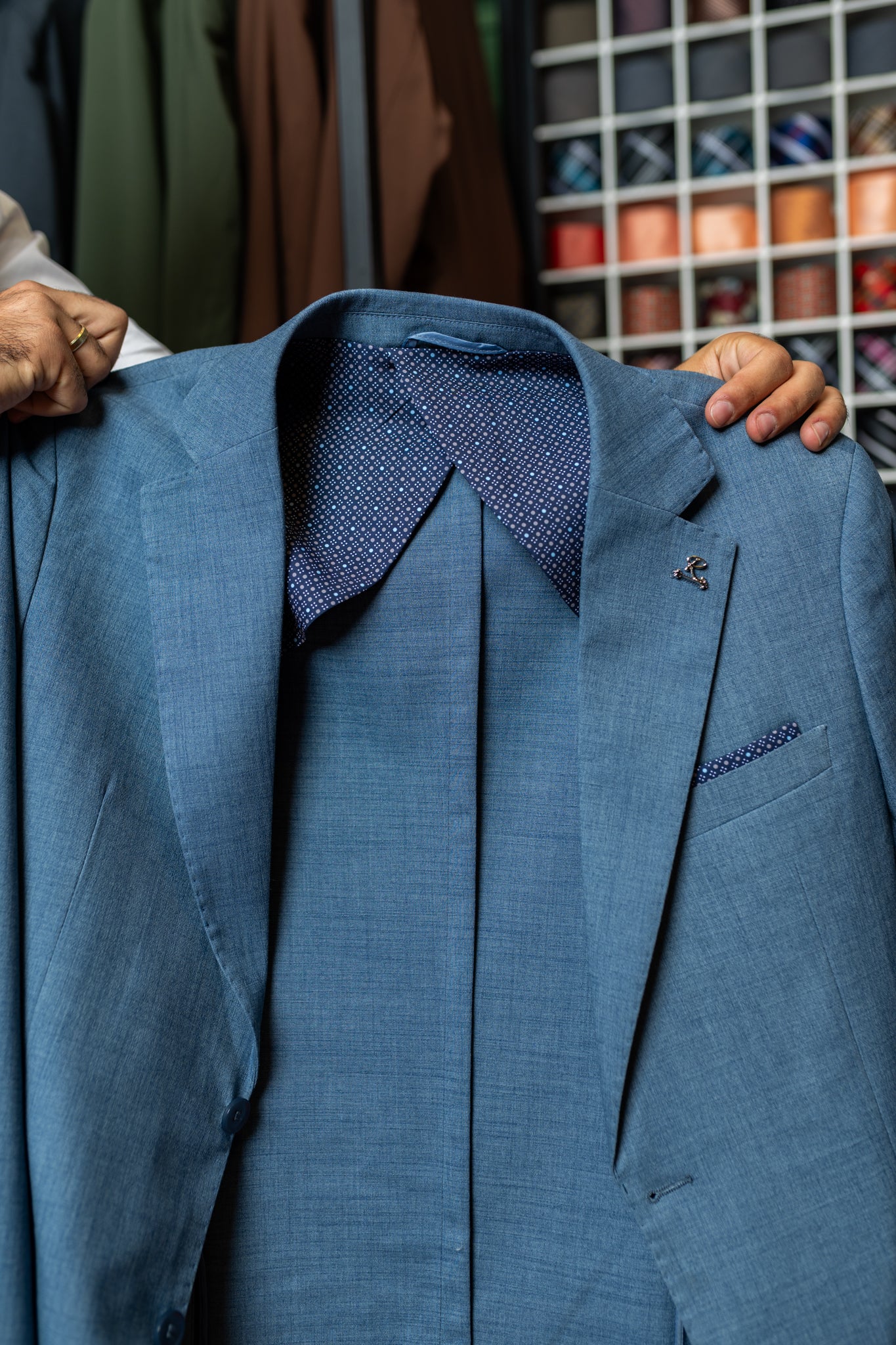 Um modelo que respeita a raiz do estilo napolitano. Limpo, fluido, com lapela mais tradicional e presença marcante.
